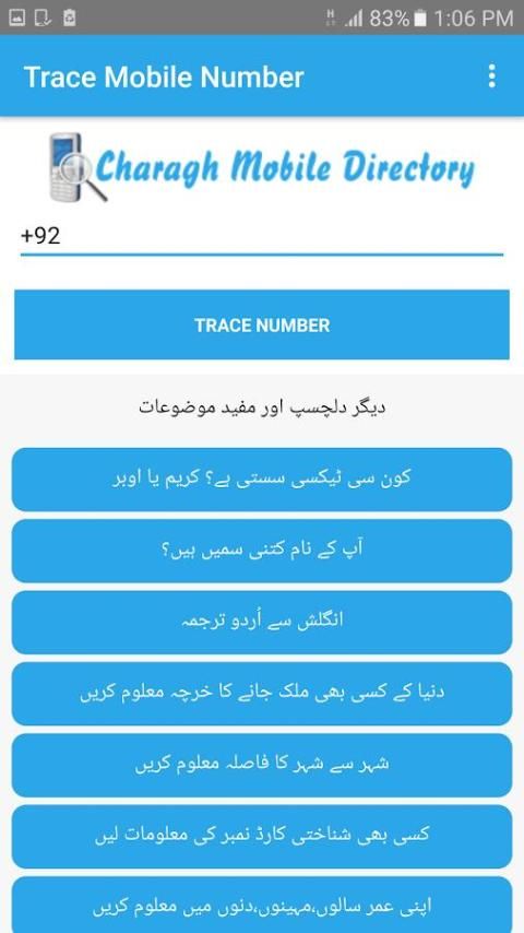 Каждый город в Пакистане имеют конкретные серийные номера. Так что вы можете найти местоположение любого мобильного номера в Пакистане этим приложением.