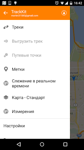 - Отслеживание друзей в реальном времени (необходимо подключение к интернету) и возможность слежения в браузере через сервис http://track-kit.net.