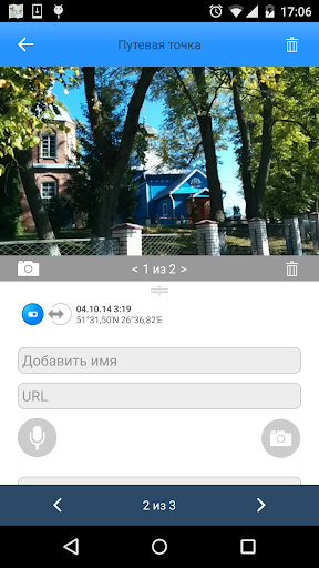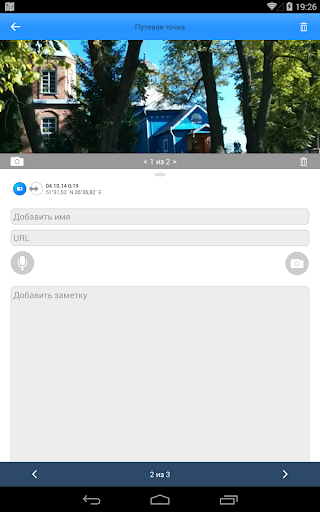 - добавление фотографии-путевой точки в один клик. Возможно автоматически добавить несколько фотографий к одной путевой точке, например, при фотографировании перекрёстков.