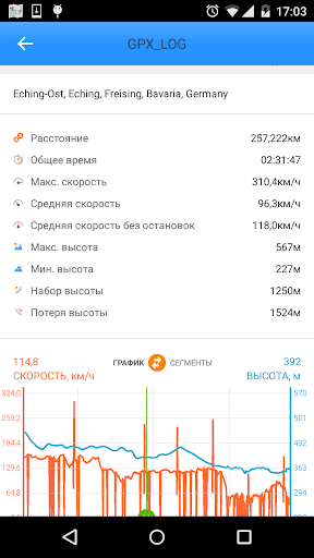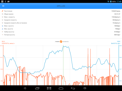 * Графики скорости, высоты, а также СЕНСОРОВ, записанных при помощи приложения Track Kit