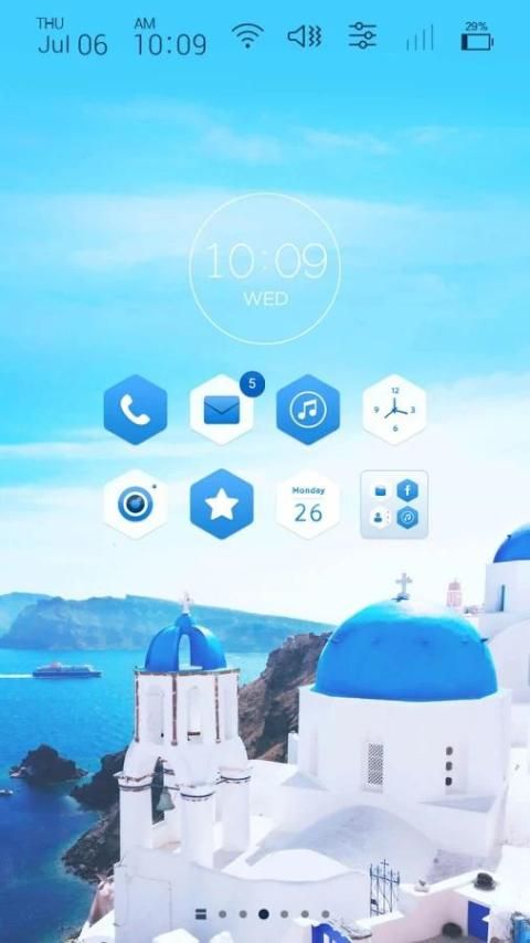 Путешествие в санторини тему является свободной темой специально организованной для пользователей Air Launcher. Наслаждайтесь! :)