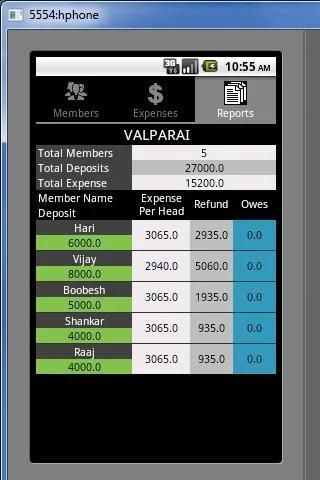 6. Отчеты Вкладка даст окончательный баланс для каждого члена за счет головы, возвраты и деньги, причитающиеся, если таковые имеются.