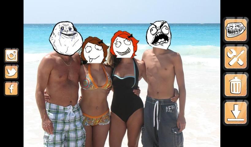 Пусть фото веселье начинается! Это редактор изображений ярость лицо предложит вам прекрасный фотомонтаж - для фотографий себя и групповых фотографий. Украсить свои любимые фотографии с мем наклейки, что этот удивительный лицо чейнджер приложение предлагает вам и сделать все ваши друзья смеются, как сумасшедший. Там в широкий выбор ярость комиксов символы, такие как Challenge Accepted, Me Gusta, College Freshman, Success Kid, I too Like to Live Dangerously, Annoying Facebook Girl, и многое другое.