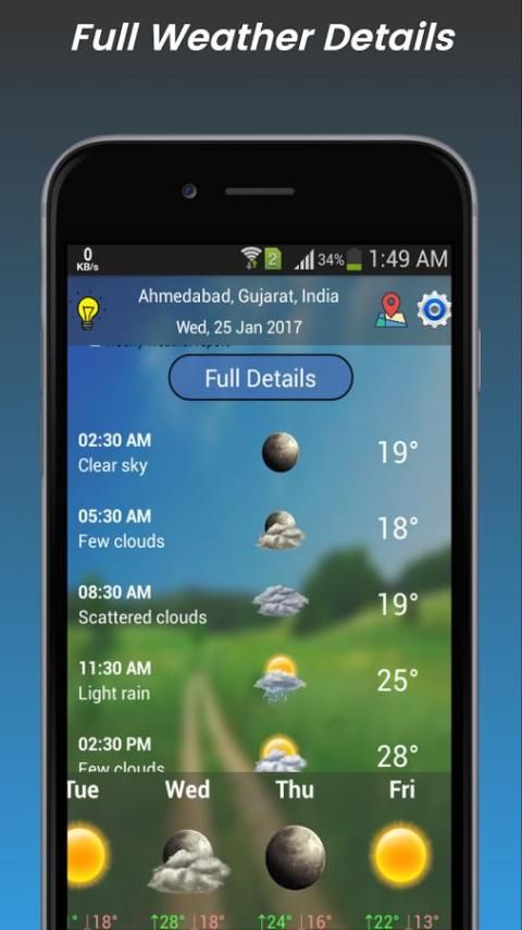 Правда погоды приложение специально вручную, чтобы быть как можно более простым. С одним касанием на экране, дает вам текущие погодные условия, а также 5 прогноз погоды с незначительным потреблением данных.