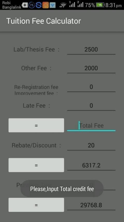 Иногда студент ошибка для расчета их платы за обучение. Это приложение должно быть помочь им правильно. Если Student ошибка, приложение уведомляет и показать, где они ошибочно .SO приложение невыгодным для студента.