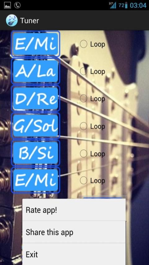 При помощи этой аппликации вы сможете настроить шестиструнную гитару или просто потренировать ваш музыкальный слух.