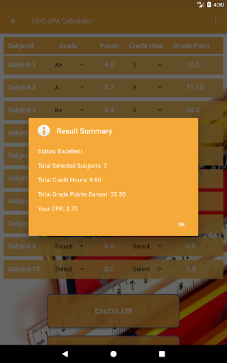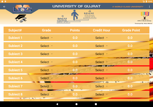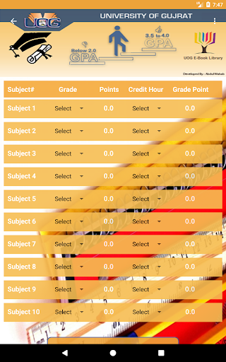 Uog GPA - CGPA Калькулятор имеет привлекательный и пользователь -Друшаемый интерфейс, чтобы понять все приложение.