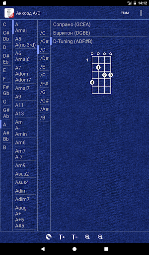 - поддержка 3 типов укулеле: сопрано, баритон, D-tuning