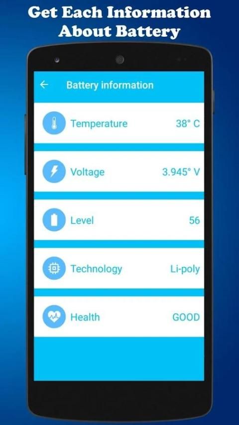 Информация о батарее : Получите подробную информацию батареи, только с одним нажатием вы можете узнать температуру, напряжение, здоровье вашего аккумулятора устройства.