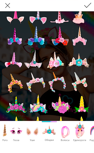 ♥ Добавьте цветочный ободок на фото или примерьте на фото банты в Единорог Фото!