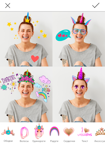 ★С помощью Единорог Фото вы можете стать милым единорогом или красивым пони, примерить корону и разноцветные волосы на фотографию, рог единорога, поменять прическу и многое другое всего за несколько секунд!★