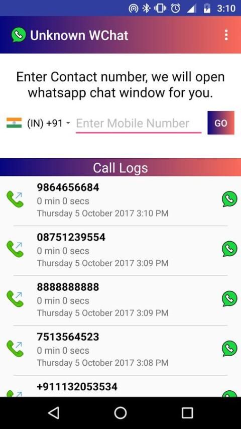 2. UnknownWChat allows you to send Whatsapp message from call logs