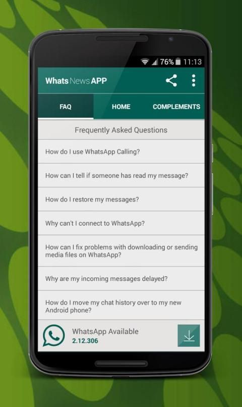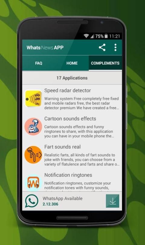 Его функция очень проста, проверьте версию установленной на вашем устройстве, и если есть более новая версия, которая не находится в Google Play. Всегда иметь последнюю версию WhatsApp без необходимости проходить через их официальный сайт.