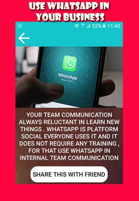Использование WhatsApp для вашего бизнеса - бесплатное приложение, содержащее лучшие советы для этой идеи! эта идея является новой и будущей для всех