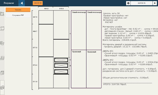 Спланируйте свой шкаф купе, подберите материалы и узнайте их суммарную стоимость.