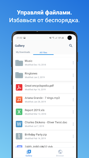 - Быстрый и простой в использовании файл-менеджер: ищи, сохраняй, перемещай или удаляй файлы на твоем смартфоне иле планшете