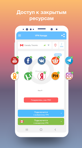 Быстрый и бесплатный Vpn Канада позволяет в один клик получить канадский IP или разблокировать доступ к закрытым сайтам и приложениям. Безопасное и анонимное подключение к открытым WIFI сетям обеспечивает технология подключения OpenVPN с OpenSSL ключом 2048 бит.