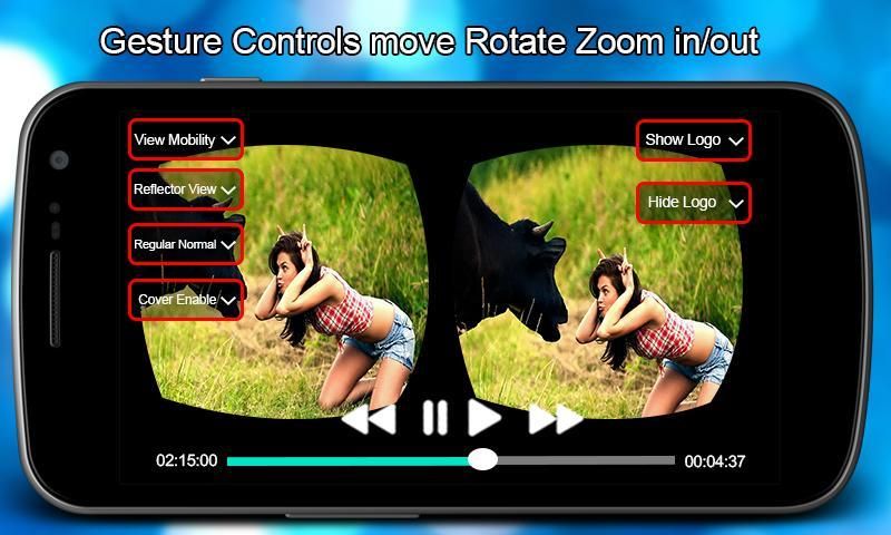 Этот плеер Медиа исследует среду, как вы на сцене, вы можете использовать ваш телефон в качестве HD виртуальной реальности Гира, применяя очки Mode.