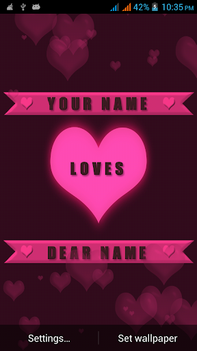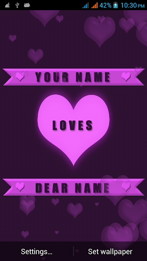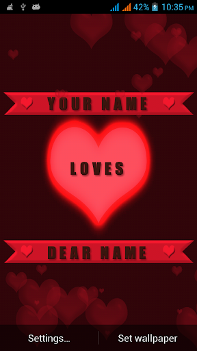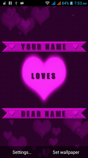 Это бесплатное приложение для живых обоев, которое специально посвящено влюбленным.> Изменение темы для фона Изменить текст Цвет Изменить имена дисплея и центральный текст С Днем Святого Валентина !!!!