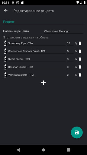 - возможность СОХРАНЕНИЯ РЕЦЕПТА самозамеса и загрузка из списка