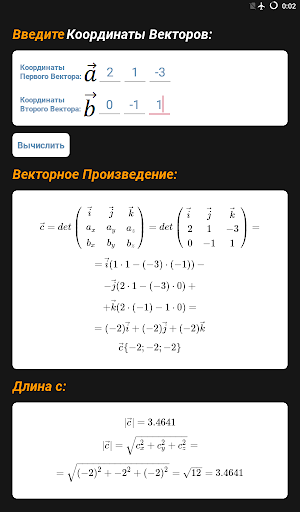 Найти результат векторного произведения вектора на вектор