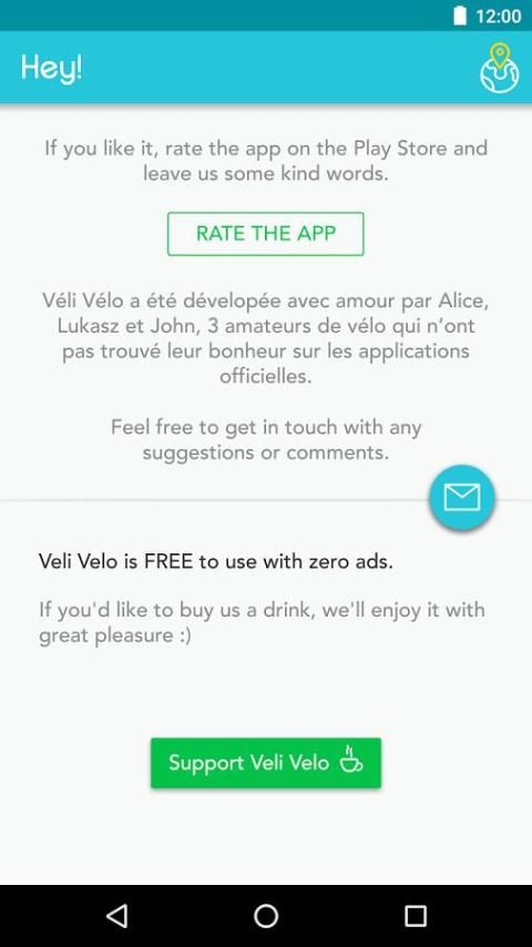 Для того, чтобы отправить нам обратную связь или сообщить о проблеме, войти в контакт в velivelo@intheloup.io или на Twitter @ VeliVelo_App