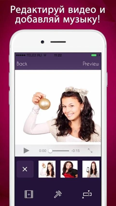 - 2 режима редактирования: обычный и 15-секундное видео;