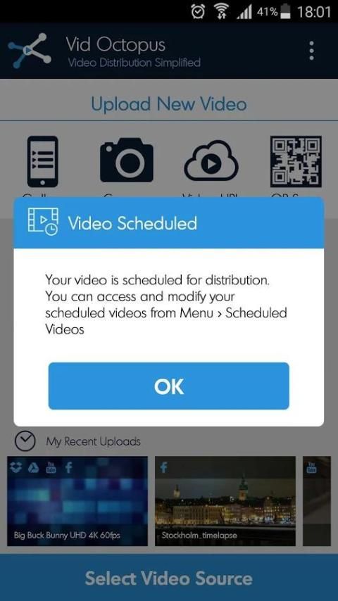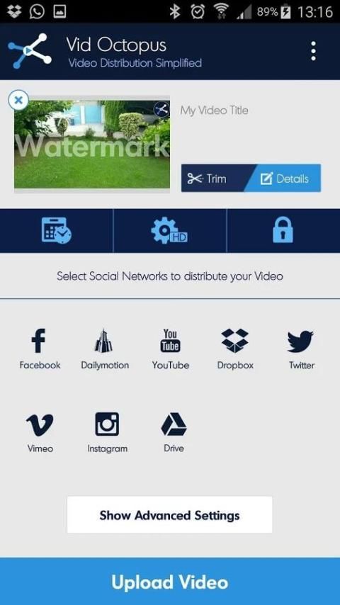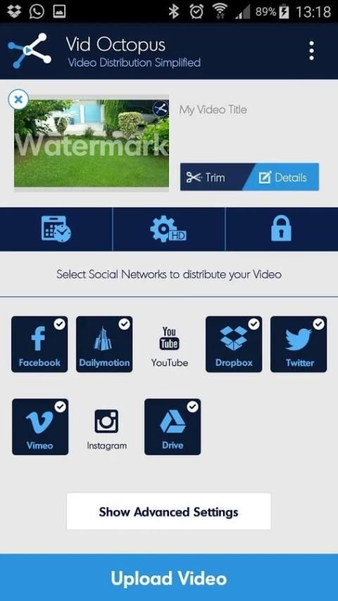 Загрузить, пост и расписание видео Одновременно с Facebook, YouTube, Twitter, Vimeo, Dailymotion, Dropbox, Google Drive - все из одного места: Vid Octopus