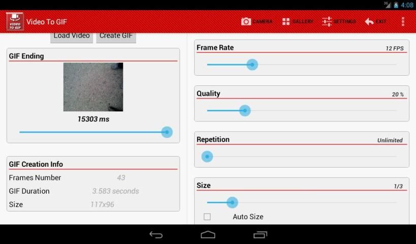 Попробуйте использовать настройки выше. Если он не работает, вы можете попробовать низкой частотой кадров. Частота кадров устанавливается из видео, загруженного и является наиболее важным спецификации, потому что дает в GIF плавное движение. Но я предлагаю вам ниже диапазона времени, размера или качество перед. Не стесняйтесь проверить.