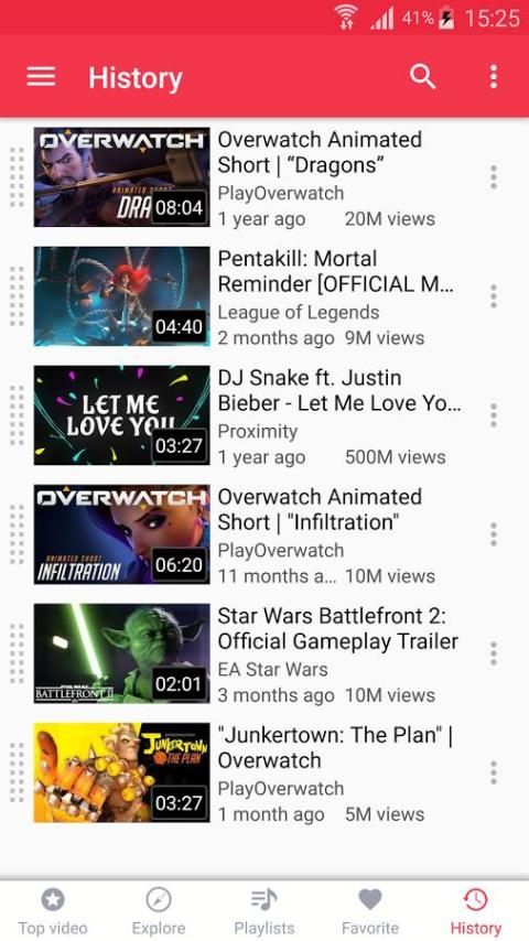 - Поиск видео, плейлисты их и сортировать их по количеству просмотров, дата публикации или рейтинг;