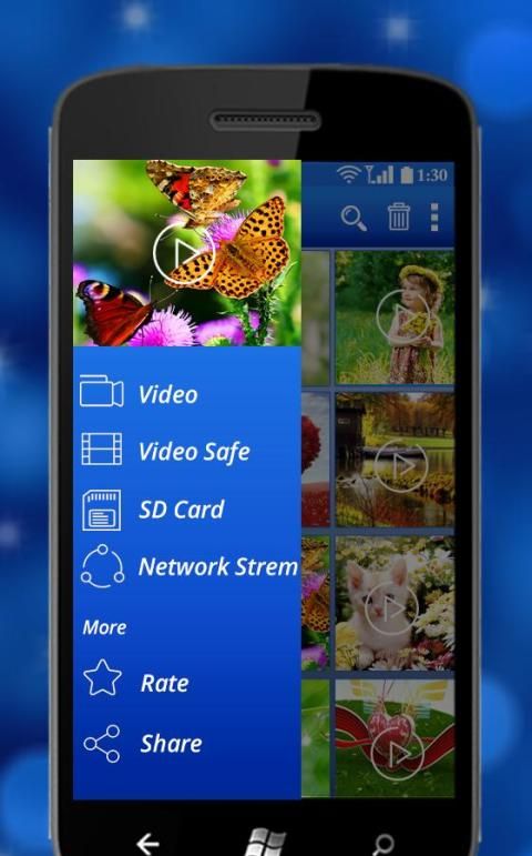 Мультимедийный менеджер с автоматической идентификации всех видеофайлов на устройстве.