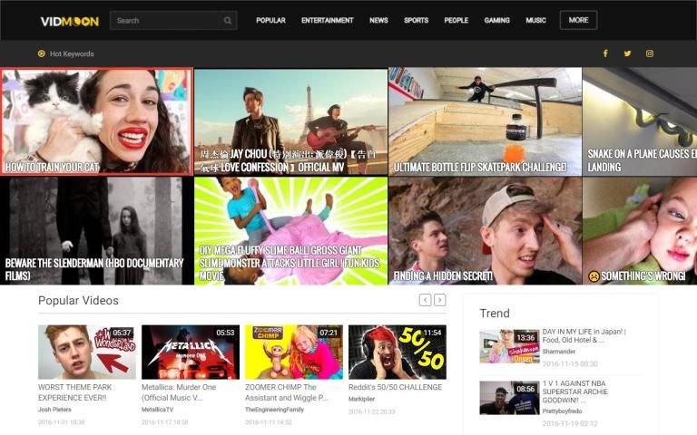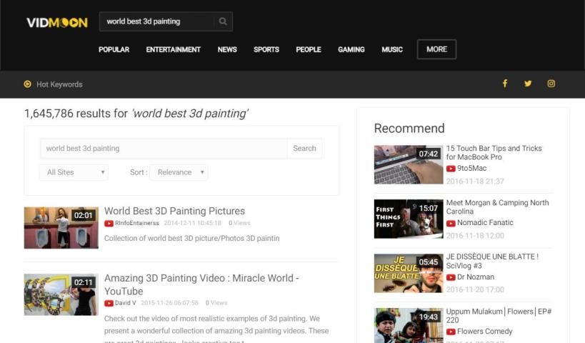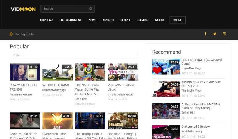 Vidmoon является глобальным видео поисковиком, который собирает ссылки и встроенное видео и информацию от третьих сторон обмена видео платформ.