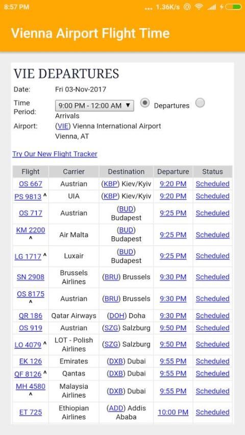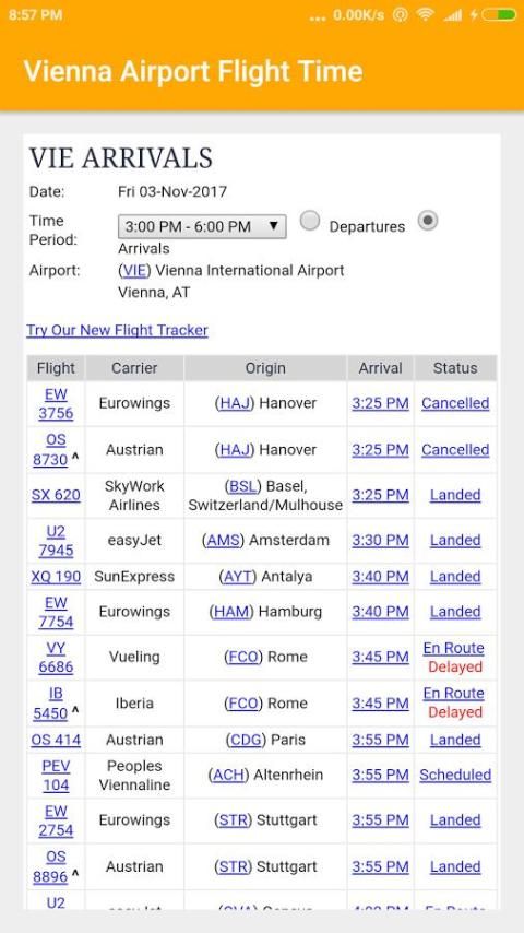 Австрия, Вена Международный аэропорт Летные приложения Время. Получить Живая Прибытие Отъезд реального времени полетной информации. Международный и внутренний вылета рейса, рейс прибытия, номер рейса информацию из этого приложения. В режиме реального времени полетной информации. Кроме того, вы получите полета приземлился, задержки, отмены, сведения о расписании из этого приложения.