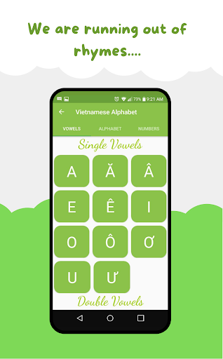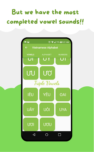 Особенности вьетнамских алфавит: * Двухместный и тройной гласные включены в себя * Номера от 0 до 1 миллиона *практиковать прослушивание