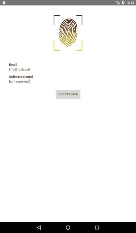 1. Om deze app te gebruiken dient u een account en vingerafdruklezer apparaat via www.funico.nl aan te vragen