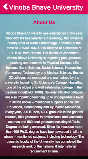 Официальное приложение Vinoba Bhave University - загрузите его, чтобы получить последние обновления на вашем смартфоне и планшетах.Приложение поможет вам получить последние обновления, уведомление о проживании в прямом эфире и привести к непосредственному у университете Виноба Бхув.