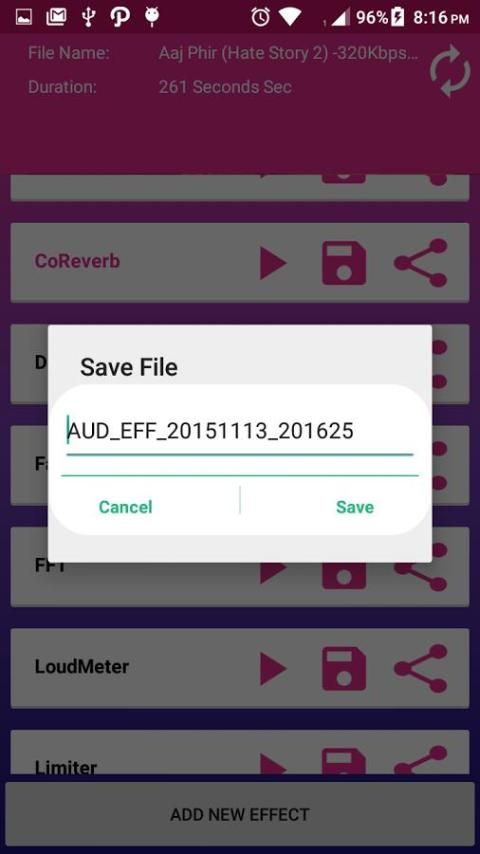 Вы можете экспортировать музыку с выбранным эффектом.
