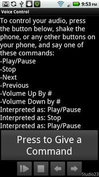 Voice Control is a remote for your media player. Simply say a command and speech recognition will pause, play, stop, or skip your music; raise or lower the volume; and more.