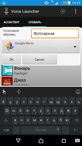 - если голосовой запрос не соответствует ни одной из ключевых фраз из пользовательского словаря, поиск продолжается по названиям установленных приложений
