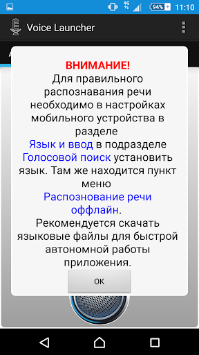 предназначен для голосового запуска приложений, установленных на Вашем мобильном устройстве.