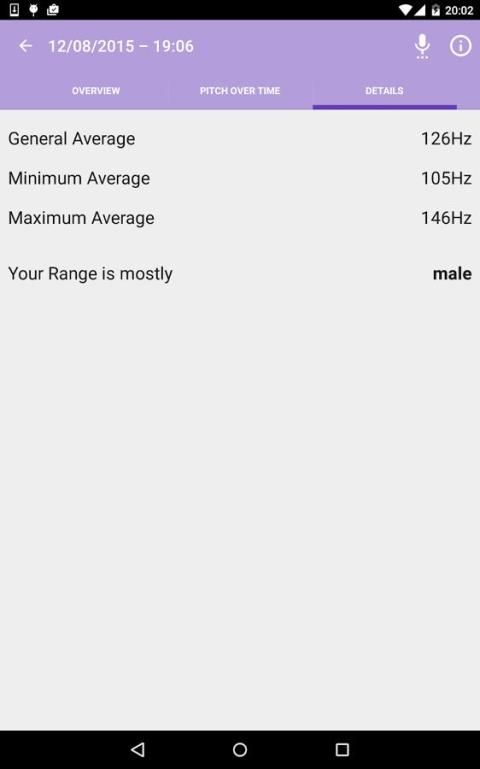 Когда-нибудь задумывались, если ваш голос становится более (традиционно) "мужской" или "женский" - или ни? Теперь Вы можете легко узнать, записи одну минуту образец с нашим приложением. Это будет анализировать голос и рассчитать среднюю октаву.