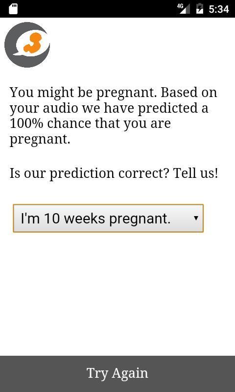 Голос Тест на беременность (ВПТ) является приложением голосовой анализ, который позволяет записывать и анализировать свой голос с помощью телефона. Беременные женщины сообщили вокальных изменения во время беременности. Мы использовали машинное обучение для анализа голоса беременных и небеременных женщин, и можем оценить сходства и различие между вашим голосом и голосом беременных женщин.