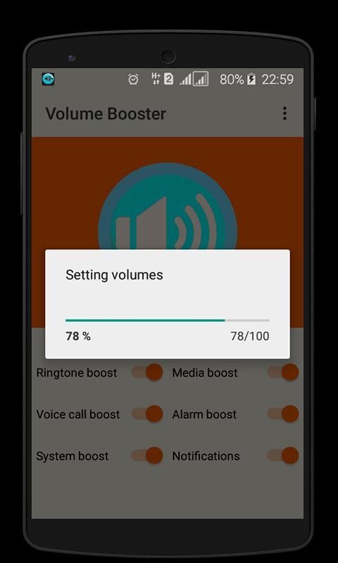 Громкость звука Booster увеличит объем для Android, когда я хочу, чтобы сделать колонки на моем телефоне звук громче или когда я хочу громче громкость музыки импульс и бас. Это приложение может увеличить громкость на телефоне на 30% - 40% только с одним краном без искажения звука. Таким образом, вы можете создать отличный звук при прослушивании музыки, просмотре фильмов, телефонные звонки онлайн с друзьями.