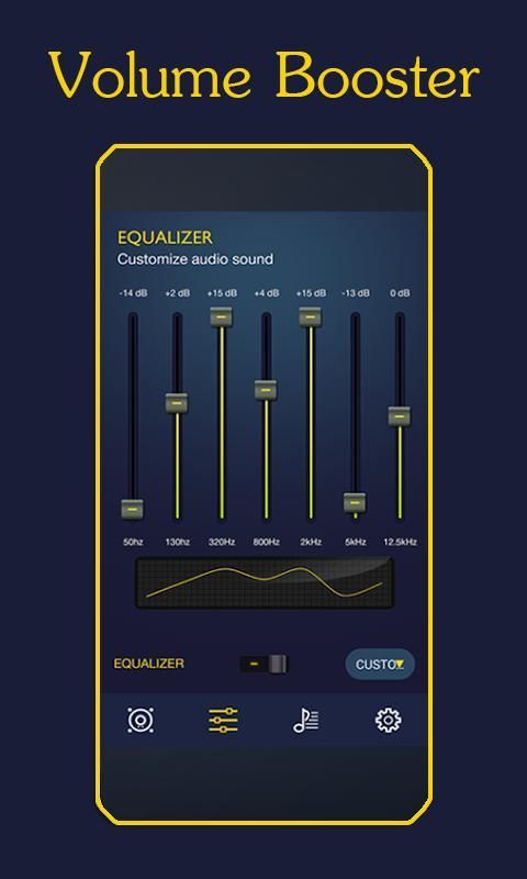 Теперь, как раз только с 1 прикосновением, вы можете увеличить громкость звука на максимум, чтобы эквалайзер музыки бустера или звуковой усилитель в усилителе мощности громкости эквалайзер приложении