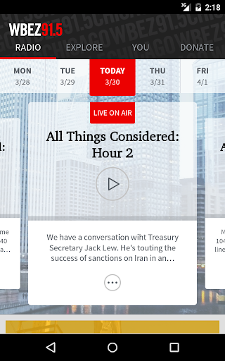 The WBEZ app brings you radio anytime, anywhere – on your terms. With over 200,000 shows, stories and podcasts available at the tap of a finger, the best audio news and storytelling is ready and waiting whether you’re on the bus, at work or on the run. Plus you’ll never miss a minute when you rewind the radio to go back in time and listen to shows that just aired with our revolutionary rePlayer.