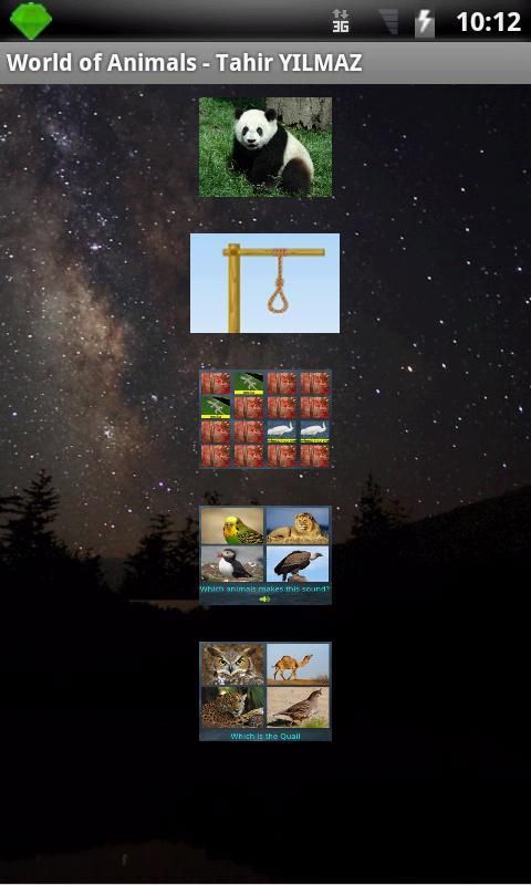 Приятно приложение, которое дает вам шанс, чтобы узнать 100 животных и птиц, а также слушать звуки, которые они делают. Приложение также включает в себя факты, викторины, комбинационной игры и игры палач.