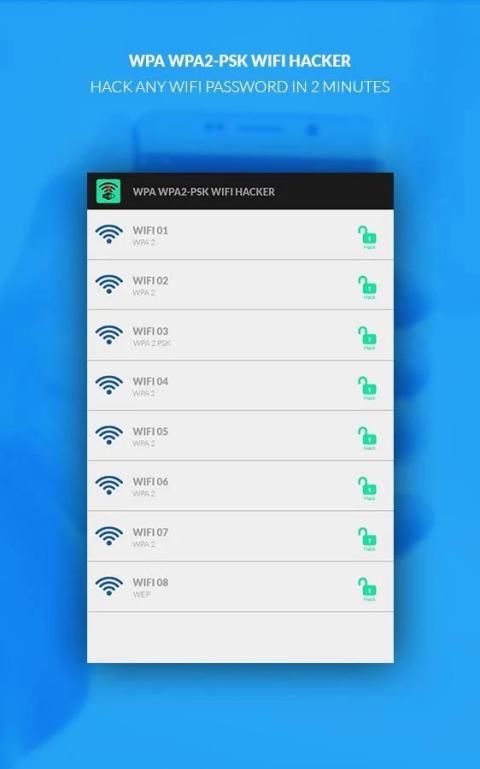 WPA WPA2 PSK WIFI Hack это новый бесплатный Wi-Fi приложение, которое позволяет претендовать на взлом пароля всех сетей рядом и получить доступ. Это выглядит профессионально, и это лучшее приложение для шутки друзей.