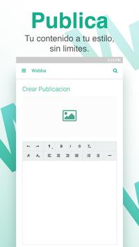 Wabba, es la aplicacion donde podras dar a conocer tus ideas textualmente de la manera que tu quieras al mundo entero, solo escribe o agrega una foto y durante 12 horas estaras visible para todo el globo.