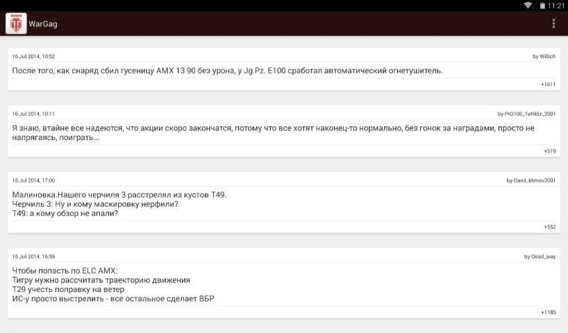 Ваше любимое развлечение ресурс по Wargaming ММО-игр теперь доступен в виде удобного Android приложения. Это место, где "танки, самолеты и корабли сходятся в битве за лучшую юмора в Интернете".