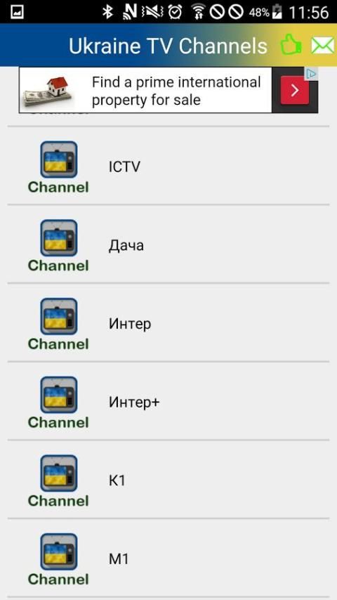 Вы будете иметь список телевизионных каналов в Украине.